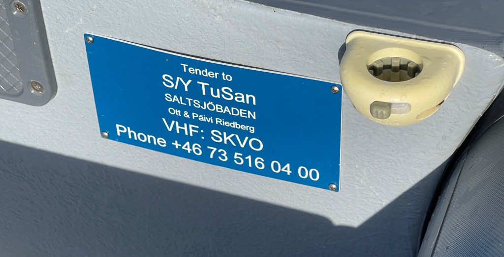 När vi sedan går till deras kontor för att checka in och anmäla den försvunna jollen (den är märkt med TuSanˋ namn och vårt namn) är de fortsatt mycket trevliga, även om det tar ett par timmar att göra anmälan. De bjuder på choklad och märkes-vatten. Som tur hade jag tagit bilder på jollens serienummer-skylt, Id skylten med våra kontaktdata osv. och hade gjort en anteckning om longitud/latitud där vi tappade jollen.