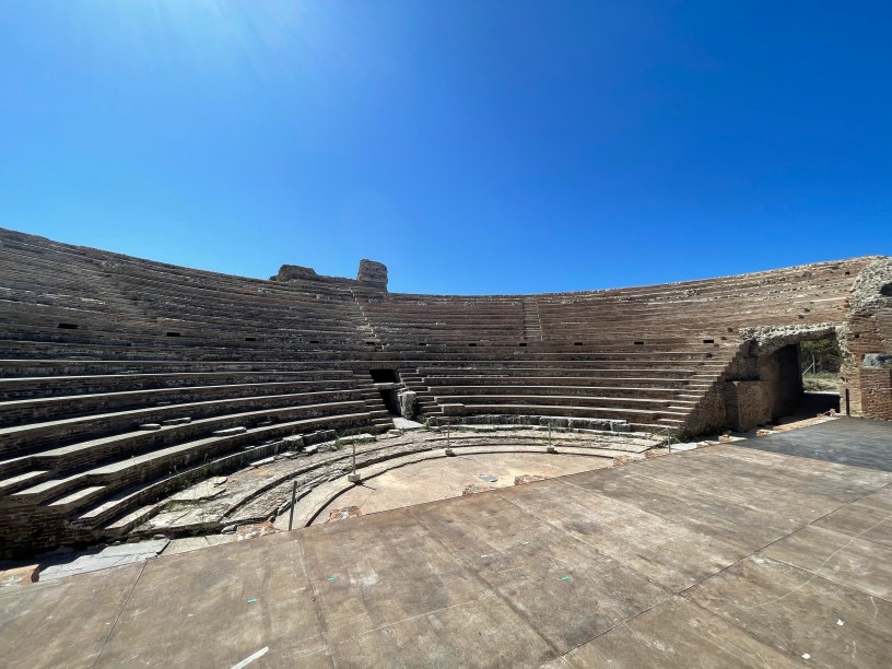 Några dagar senare plockar vi upp min gode vän Janne, som tillbringar en vecka med oss. Vi hinner titta på Nicopolis, grekiska fornlämningar som har några tusen år på nacken, innan vi åker runt i Ioniska havet med Janne. Bland annat återvänder vi till Kalamos och får se en säl! Det hade vi inte trott och en snabb Googling ger att det visst finns sälar i Medelhavet – det är Munksälar och de är ytterst säl-synta (ordvits på svenska), det finns bara ca. 500 individer i Medelhavet.