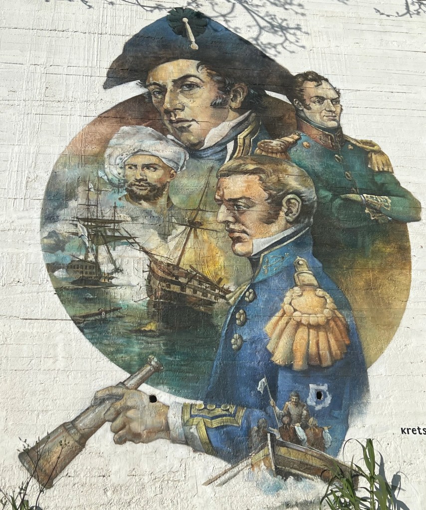 Seglar / motorseglare till Pylos på sydvästra Peloponnes. Byn ligger vid en stor vik, nästan ett litet innanhav. Enligt Navily-appen finns en ofullständig marina (ett EU-projekt) där man kan lägga till kostnadsfritt. Den lokala piraten kom och hjälpte till att förtöja – säg 5 minuter! – och ville sedan ha 10€! Litet hjälp till de fattigare ska man ju kunna ge men detta smakade inte gott.