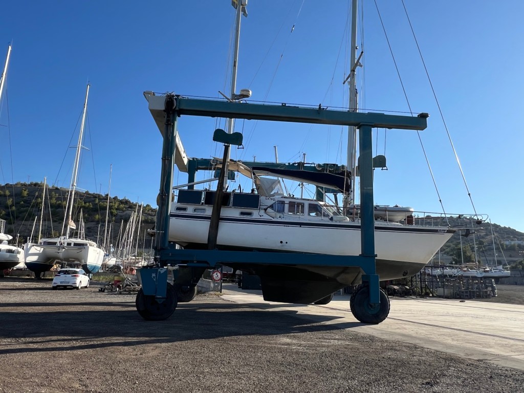 Vidare till Agii Theodors, alltså till Almira varvet där TuSan ska lyftas. Vi kommer fram kvällen före lyftet med tanke på att lägga oss i lyft-fållan under kvällen eller natten när det blåser som minst. Tyvärr ville varvet inte det av olika skäl så vi fick invänta nästa morgon. Det är svårt att backa in TuSan i fållan i sidvind och vi fick en lätt krock med kajkanten. Ingen större skada skedd (aktre ankaret tog det mesta av smällen) men nog är det förargligt.