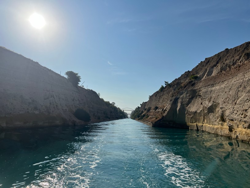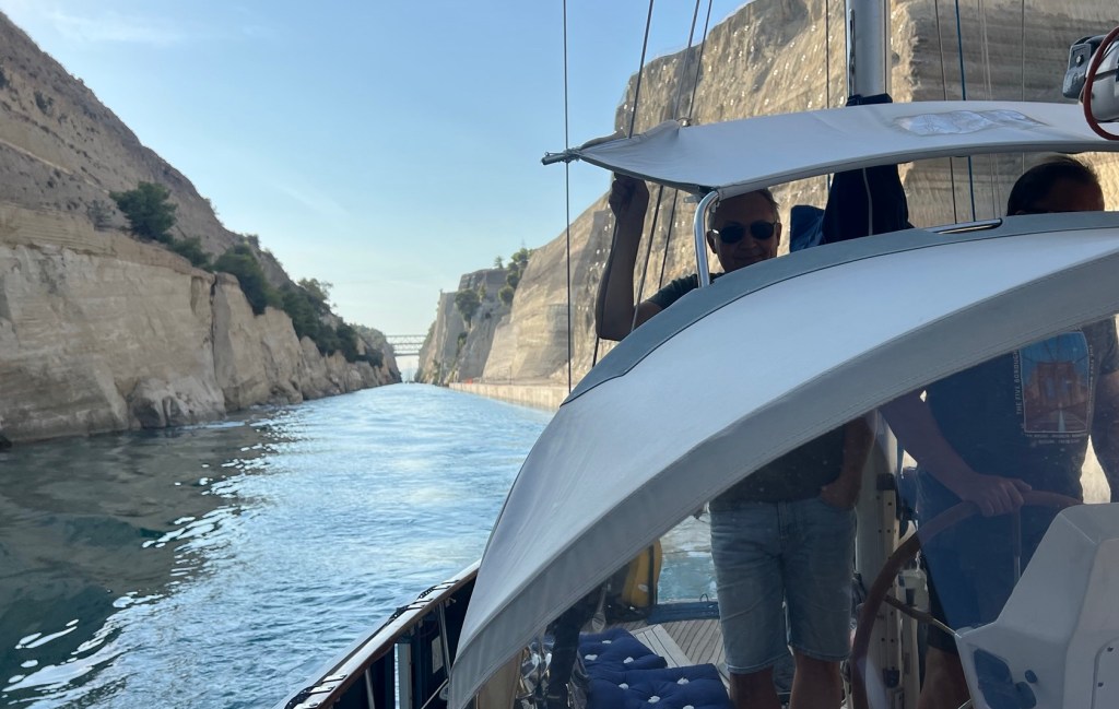 Janne kom som planerat och på måndag morgon passerade vi Korintkanalen. 244 Euro i avgift för 4,5 sjömil gör denna kanal till världens dyraste vattenväg, mätt i längden.