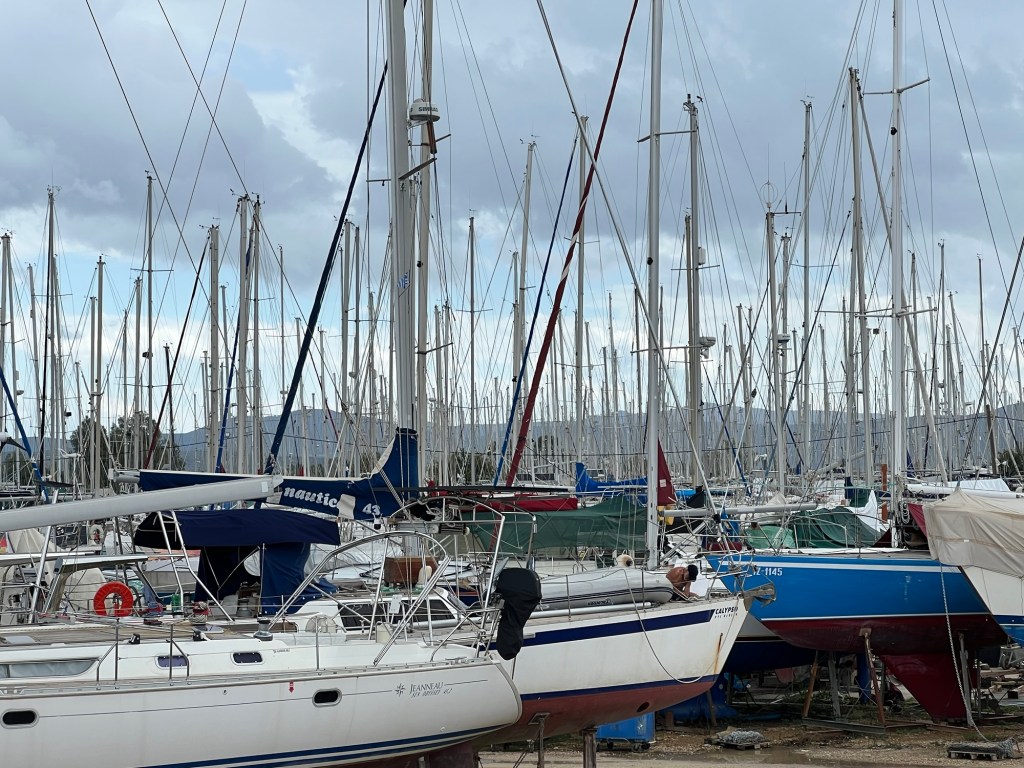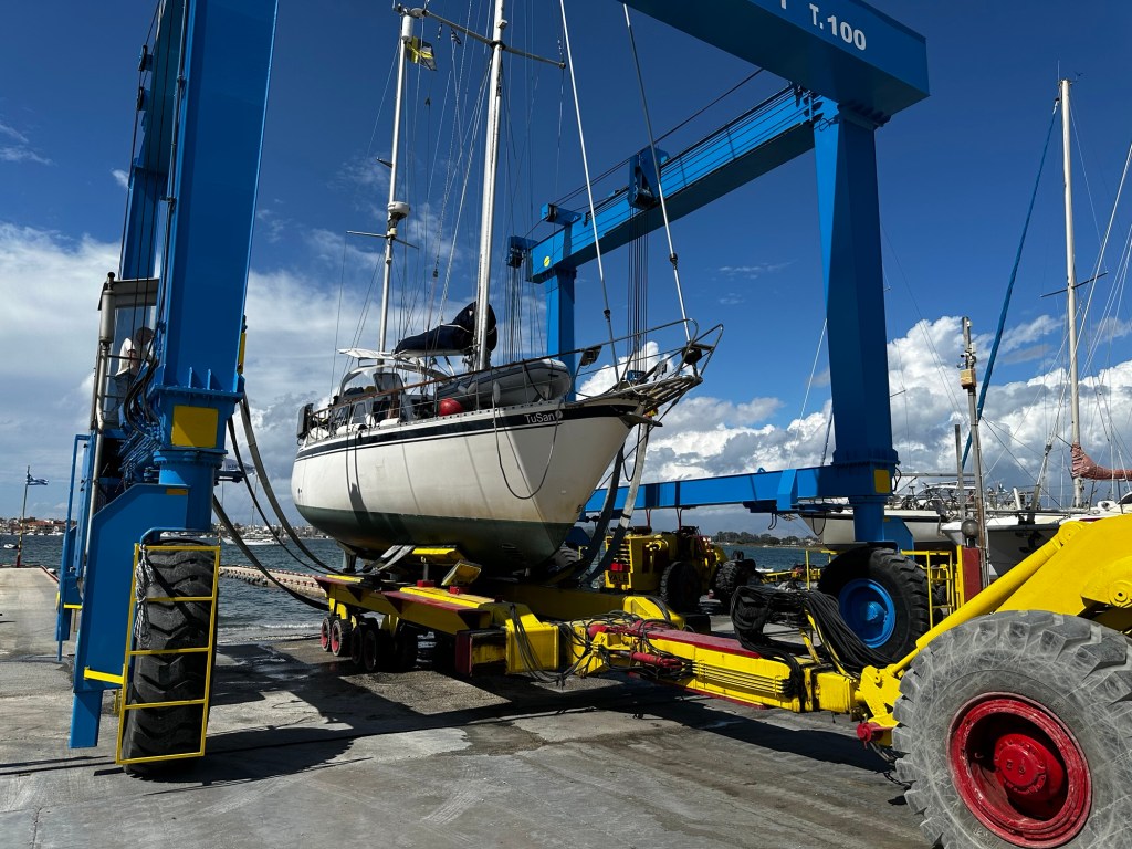 Som redan sagts i det förra inlägget ändrade vi våra planer. TuSan skulle sjösättas och sedan tas till Preveza (västra Grekland) på en vecka för att där lyftas på land igen till nästa vår.